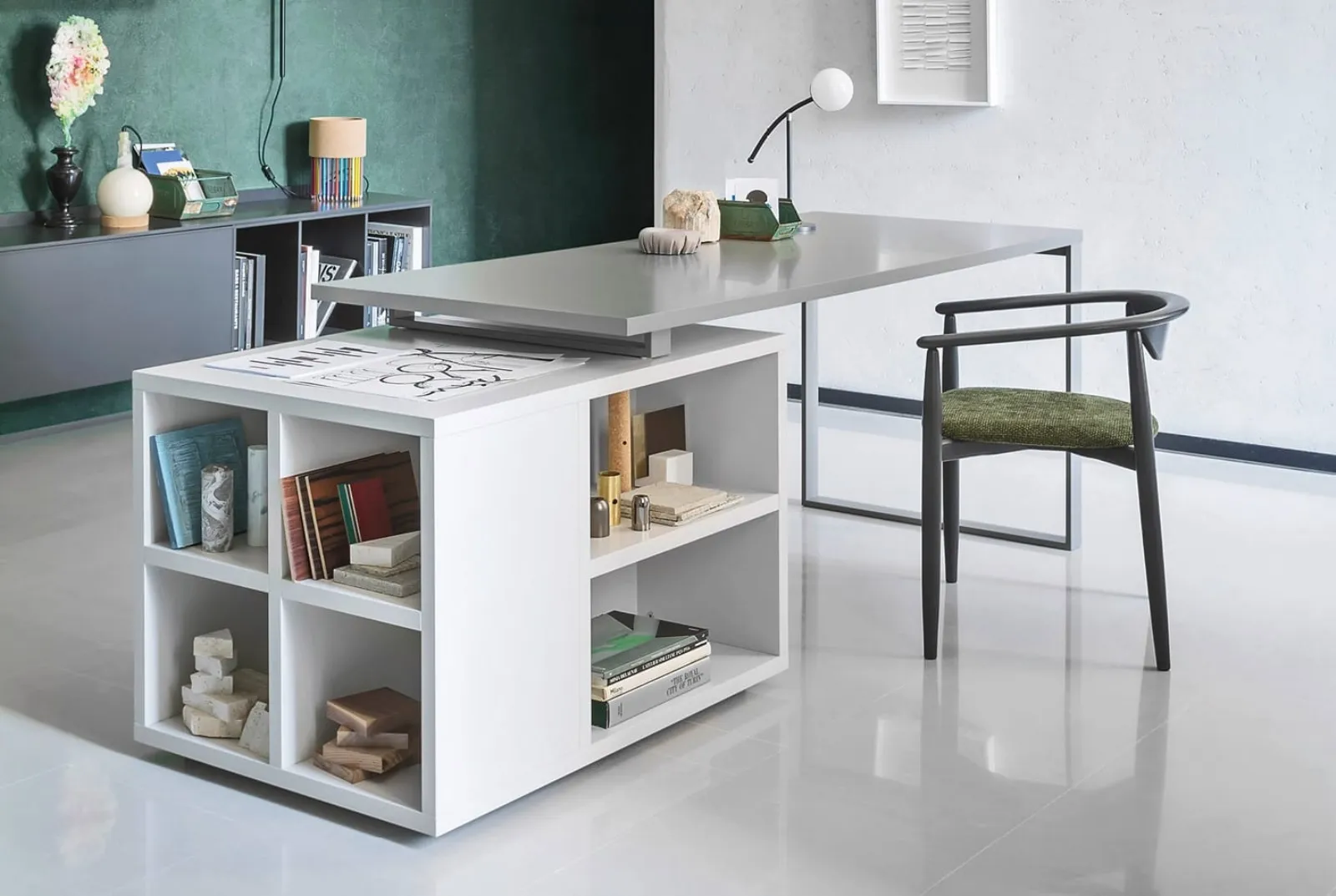 Scrittoio con libreria Isola di Novamobili in laccato: aggiungerà carattere e fascino a un locale ammobiliato con mobili ed elementi accessori dai richiami moderni. Complementi e scrittoi personalizzano l'arredo di casa, occupando lo spazio in maniera utile e rendendolo assai funzionale e di grande valore estetico. Assai versatili e plurifunzionali, i Complementi moderni in laccato svolgono funzioni diversificate: ultimano le doti di funzionalità e il valore estetico dell'ambiente. Nel nostro showroom potrai vedere dal vivo l'eccellenza dei modelli di scrittoi moderni in laccato del marchio, proprio come questa proposta in foto. Le composizioni arredative di grande valore estetico del marchio Novamobili valorizzano l'habitat con i loro colori e gusto, ricreando peculiari atmosfere arredative.