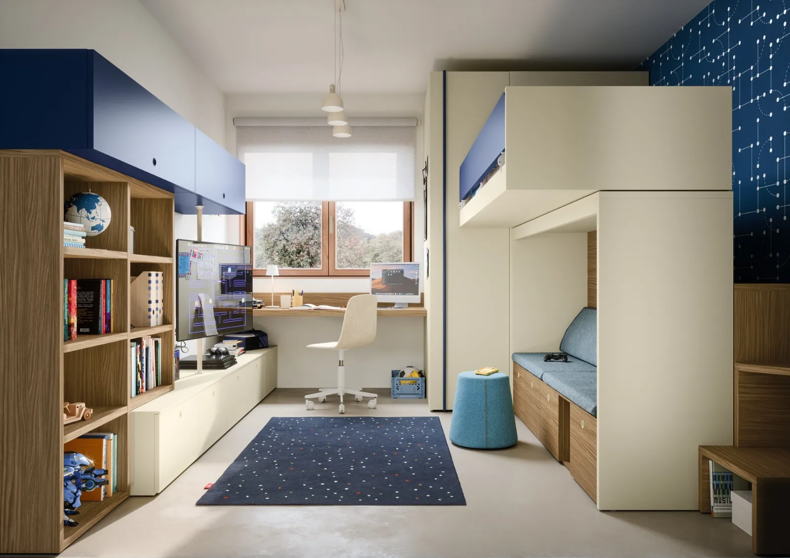 In negozio ti seguiamo dalla scelta dei mobili per la camera alla progettazione del luogo in cui i tuoi bambini cresceranno, divertendosi e sognando. Con la Cameretta con letti a castello Skid di Nidi in melaminico ti garantirai un perfetto connubio di ergonomia e sicurezza, ideale per la stanza dei tuoi bambini. Le Camerette dei nostri bambini sono l'ambiente in cui diventeranno grandi divertendosi e sognando, quindi è imprescindibile che lo spazio sia funzionale. Proponiamo nel nostro punto vendita molteplici Camerette con letti a castello moderne per bambini del brand, ideali per seguirli durante il loro sviluppo.