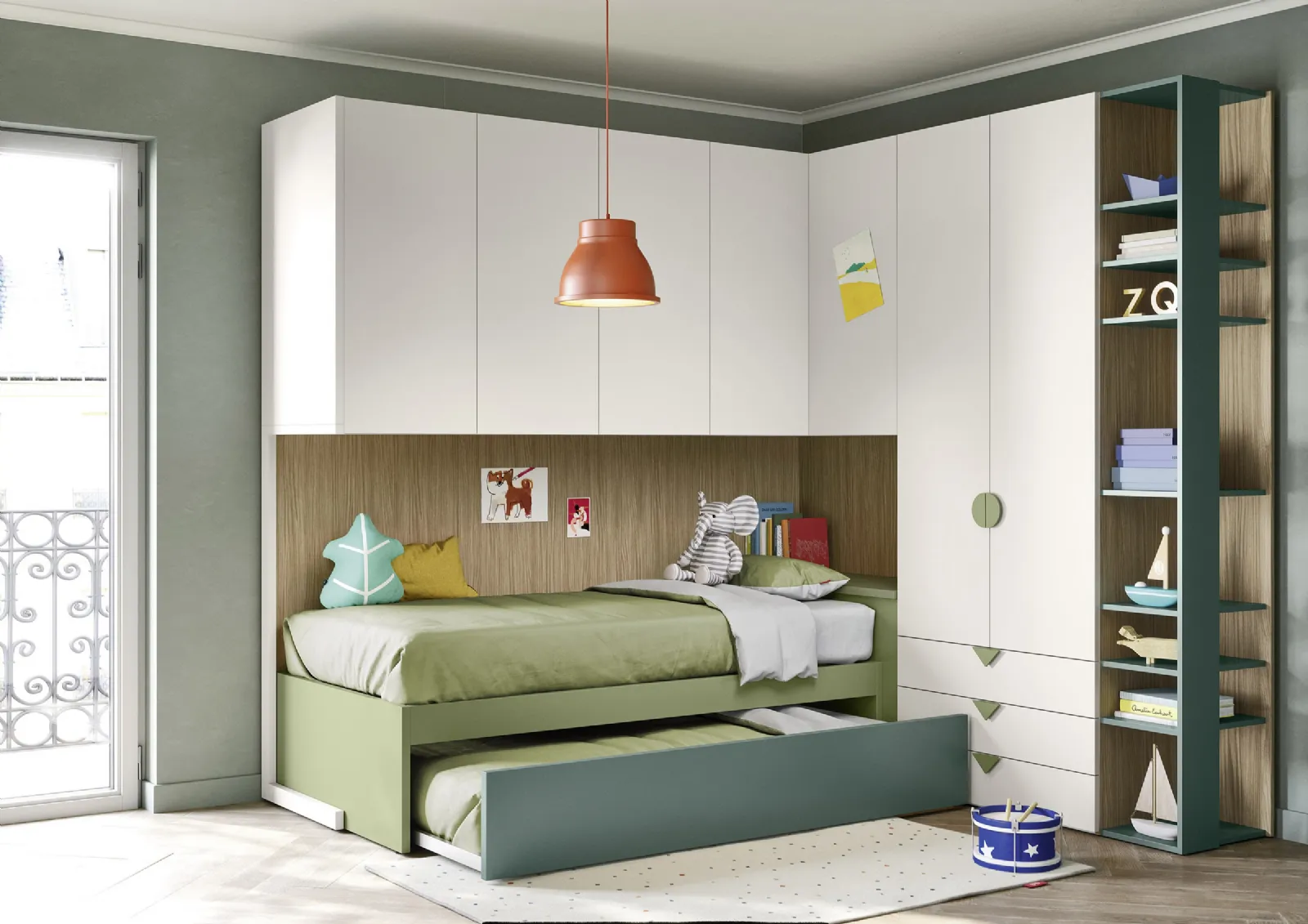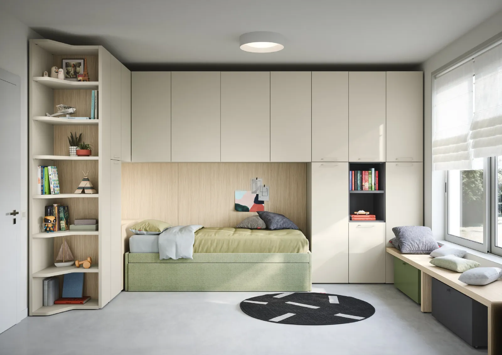 Nidi dispone di un ricco catalogo di accessori da abbinare su misura: troverai letto, armadio, tavolo da lavoro, sedie e librerie. Porta estetica e colori vivaci nella stanza dedicata ai bambini con questa proposta, una delle Camerette a ponte per ragazzi di Nidi. Se cerchi spunti creativi per decorare perfettamente la stanza dei tuoi bambini, ti presentiamo la Cameretta a Ponte con Letti Estraibili di Nidi con finitura in melaminico. Questa proposta in melaminico ultima perfettamente le doti di funzionalità e l'estetica della camaretta, poiché è capace di congiungere ergonomia e sicurezza.