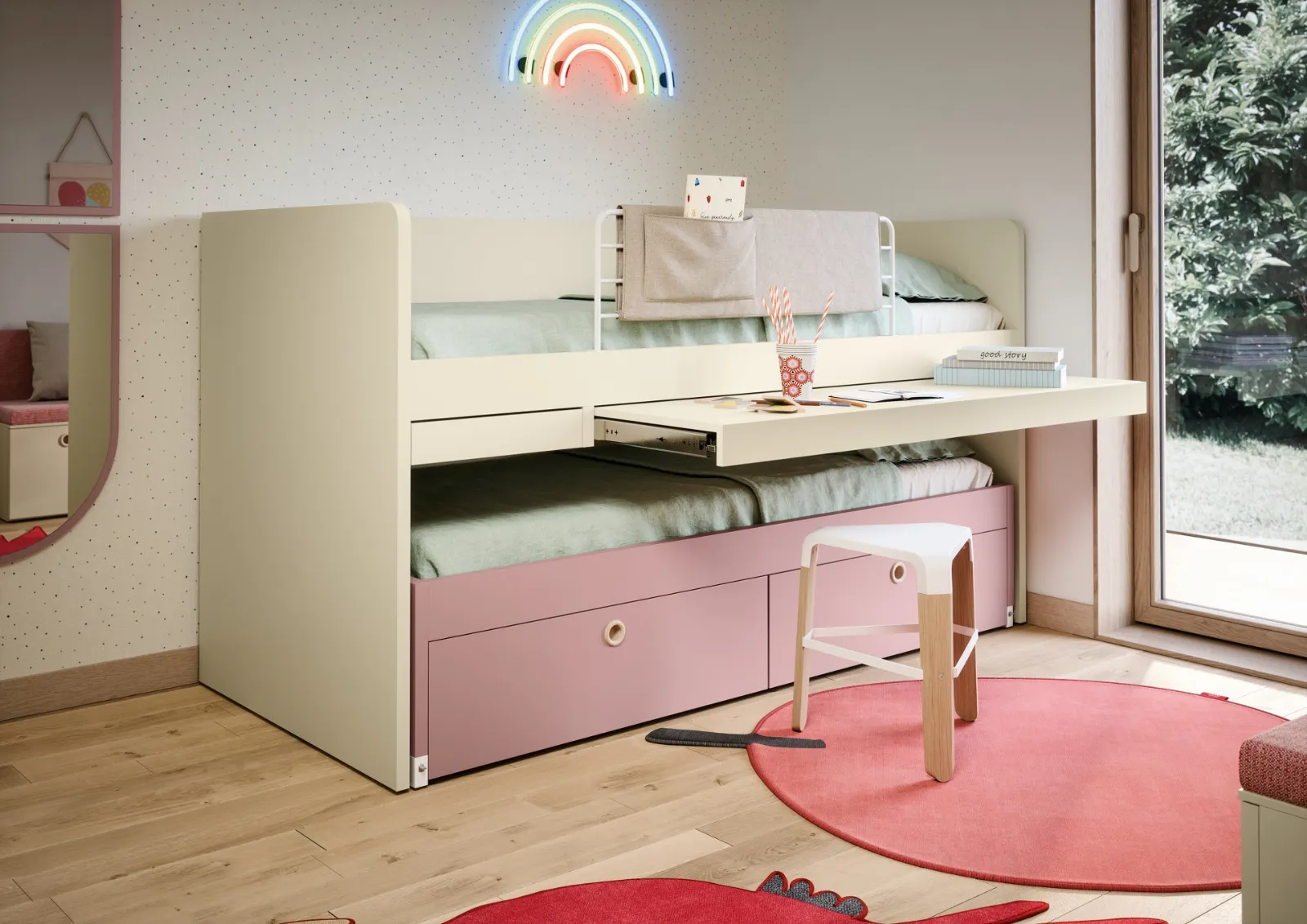 Scopri nel nostro showroom la Cameretta Salvaspazio Turca di Nidi in melaminico: è la soluzione per ricreare perfettamente un ambiente confortevole, bello e ben organizzato. Se la stanza ha dimensioni non generose, sono diverse le soluzioni che Nidi presenta, sempre capaci di congiungere funzionalità ed ergonomia. Le Camerette salvaspazio per bambine del noto e rinomato brand sono disponibili in molteplici versioni, che rispondono sempre alle esigenze dei bambini. Gli accessori disponibili per le Camerette salvaspazio di Nidi sono sempre personalizzabili, per scongiurare qualunque problema di spazio e funzionalità.