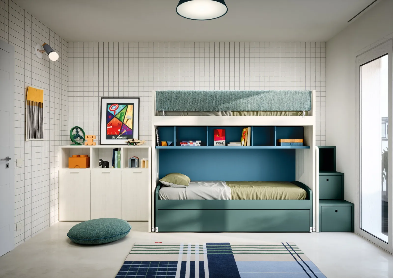 Con una composizione arredativa Nidi, potrai ultimare con funzionalità e design il luogo nel quale i tuoi bambini trascorrono gli anni più importanti della vita. Cromie di tendenza e progetti articolati ad hoc contraddistinguono le più belle composizioni del noto e rinomato brand che proponiamo in negozio. Nidi asseconda lo stile dei piccoli e le necessità dei genitori con le sue Camerette moderne a soppalco, ideali per necessità di ogni genere. La Cameretta a Soppalco con Letti Estraibili di Nidi in melaminico è un mondo complesso da decorare con cura, unendo differenti elementi accessori su misura.